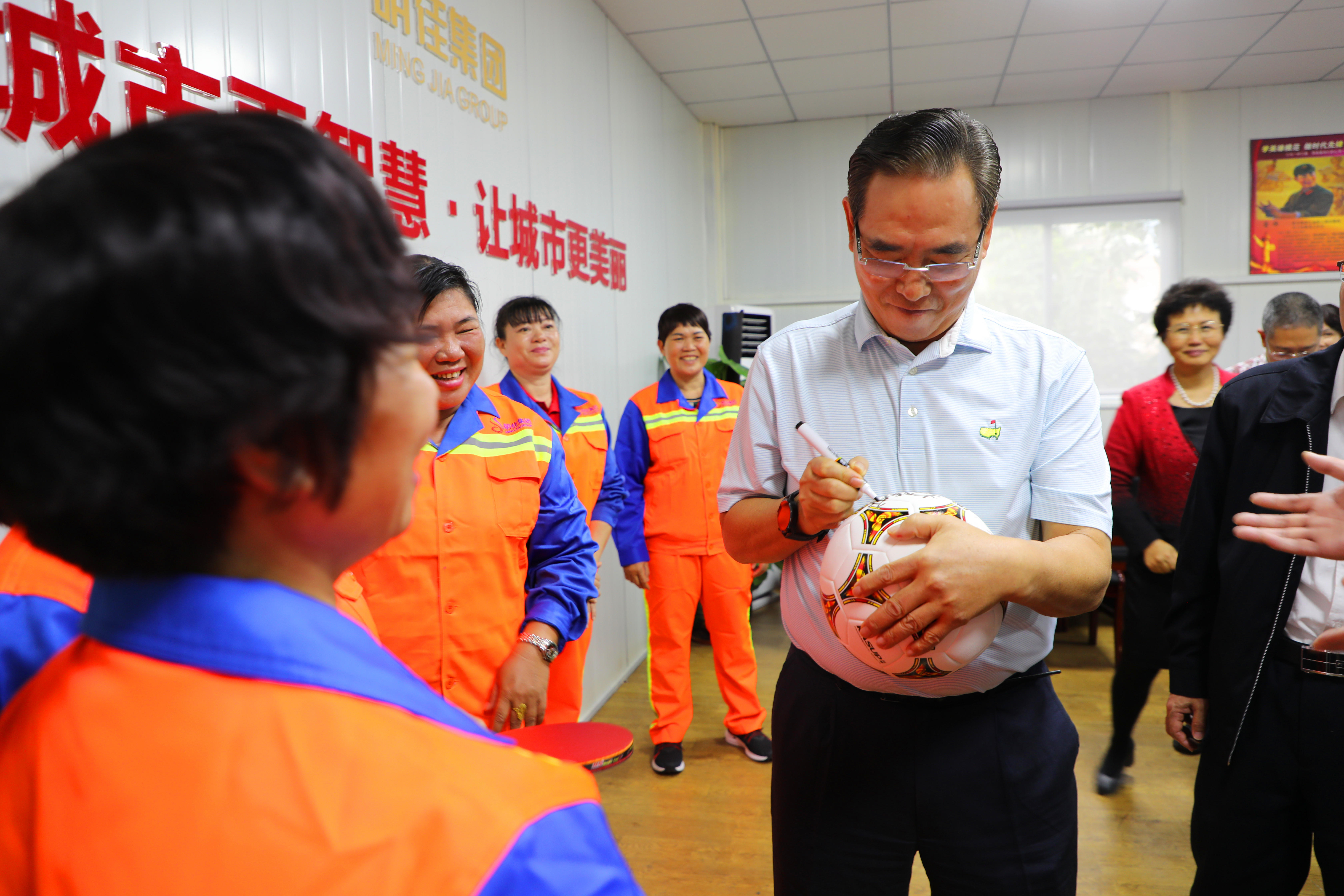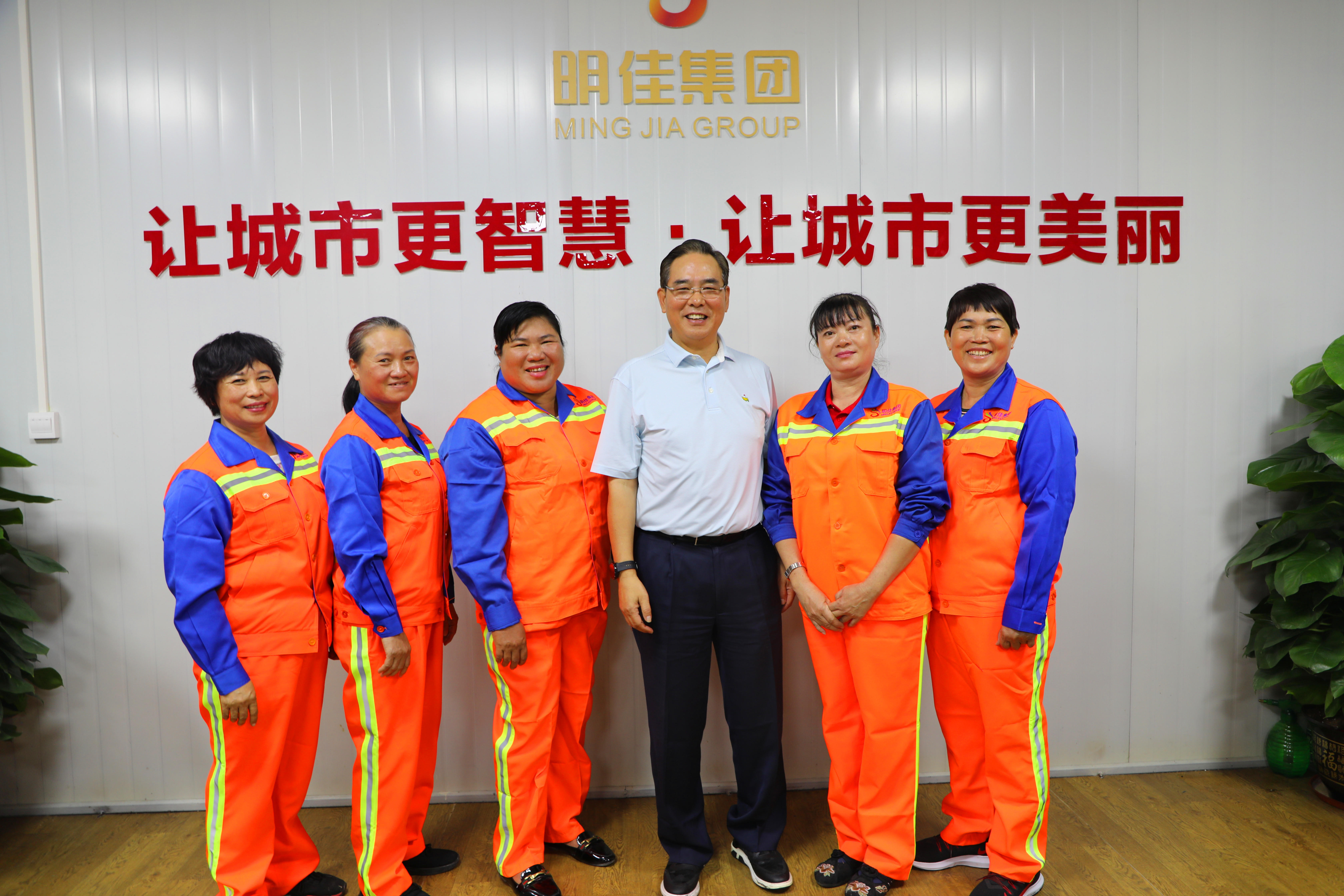 他肯定了明佳集團(tuán)工會(huì)取得的成績,并親切慰問了現(xiàn)場(chǎng)的環(huán)衛(wèi)工人,與他們一一握手,并合影留念。
