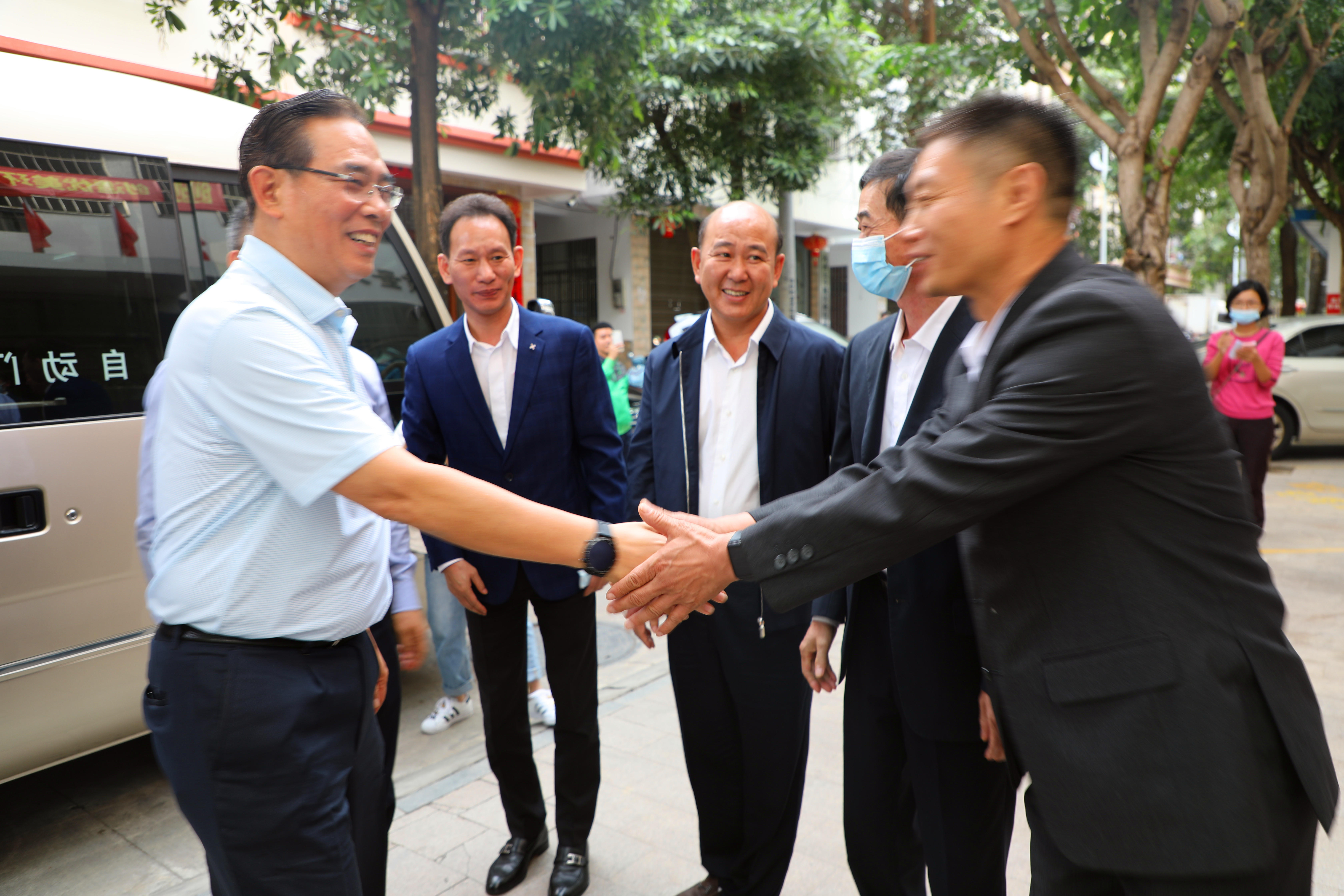 董事長陳明、總裁陳云及工會(huì)主席高斐斐在集團(tuán)門前迎接蔡副主席的到來。