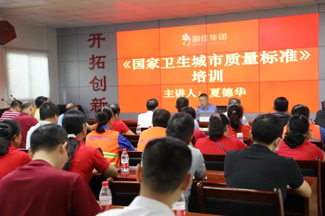 此次培訓(xùn)分三項內(nèi)容:一是總裁陳云分析國家衛(wèi)生城市復(fù)審形勢;二是夏德華調(diào)研員進(jìn)行《國家衛(wèi)生城市質(zhì)量標(biāo)準(zhǔn)》培訓(xùn);三是副總羅京鮮結(jié)合公司現(xiàn)狀進(jìn)行講解。