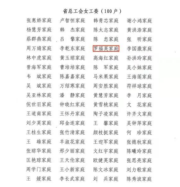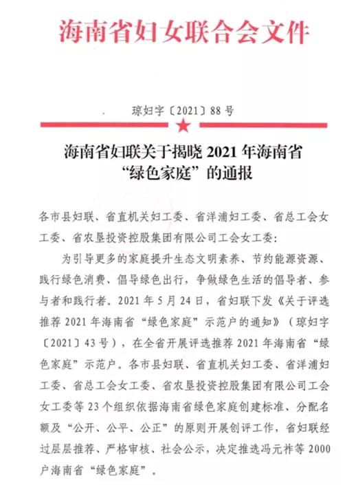 【喜報】明佳集團羅福英家庭被評為2021年海南省“綠色家庭”