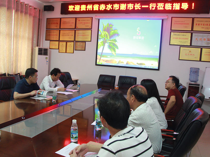 4月25日下午,貴州省赤水市謝市長一行,來三亞明佳集團總部考察。謝市長在集團董事長陳明、總顧問陳榮超、人力行政副總鐘寒、辦公室主任郭春喜等陪同下,參觀了集團的信息指揮控制中心,引起了他極大的興趣。