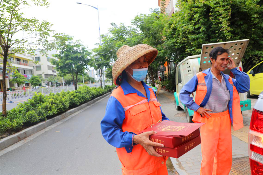(吉陽區(qū)梁茂松主管向員工發(fā)放慰問品)